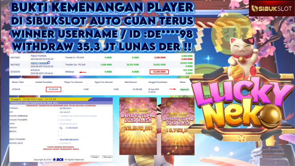 Bukti Kemenangan 30 Agustus 2025 Di Game Lucky Neko WD 35.3 Juta