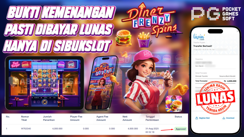 Bukti Kemenangan 31 Agustus 2025 Di Game Diner Frenzy Spins WD 4 Juta