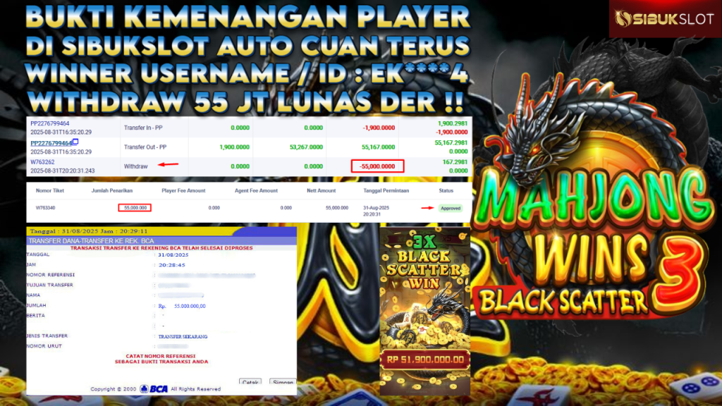 Bukti Kemenangan 31 Agustus 2025 Di Game Mahjong Wins 3 – Black Scatter WD 55 Juta