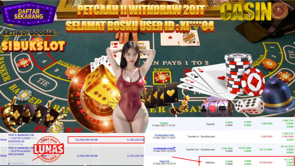 Bukti Kemenangan 31 Maret 2025 Di Game Sexy Baccarat WD 20 Juta