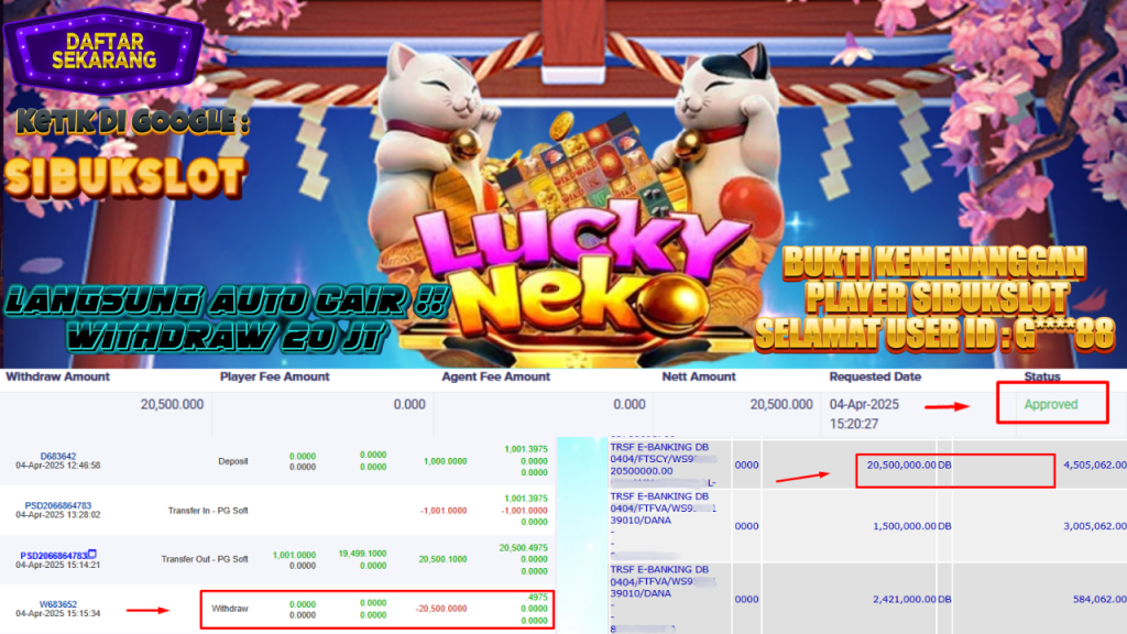 Bukti Kemenangan 4 April 2025 Di Game Lucky Neko WD 20.5 Juta