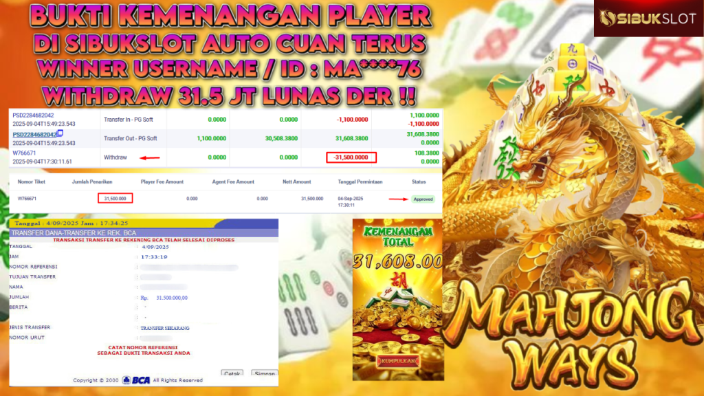 Bukti Kemenangan 4 September 2025 Di Game Mahjong Ways WD 31.5 Juta