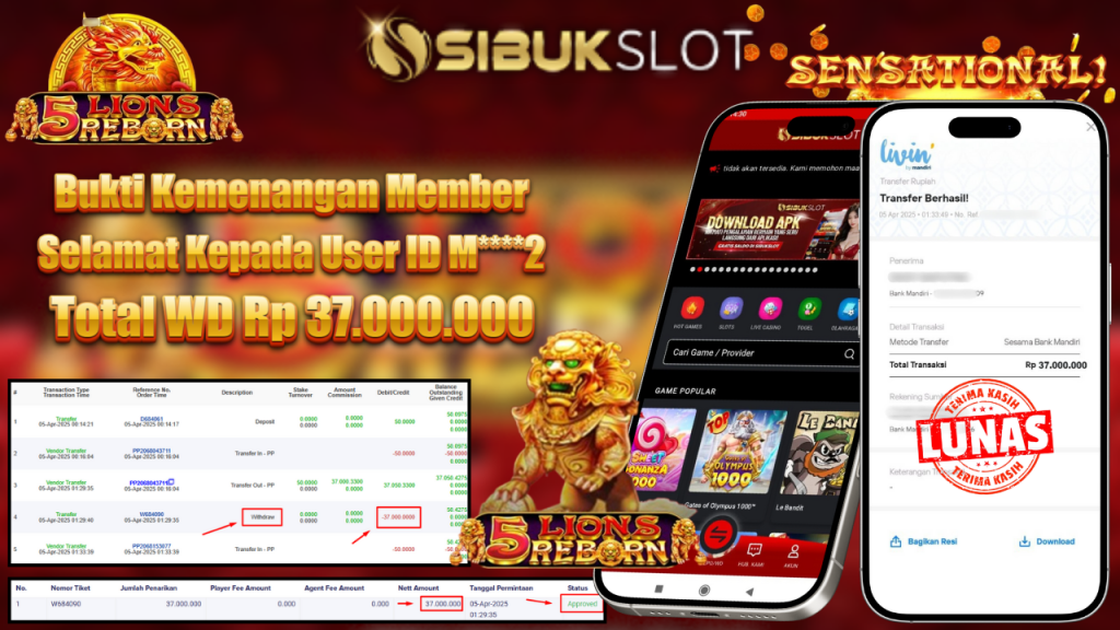 Bukti Kemenangan 5 April 2025 Di 5 Lions Reborn Game WD 37 Juta