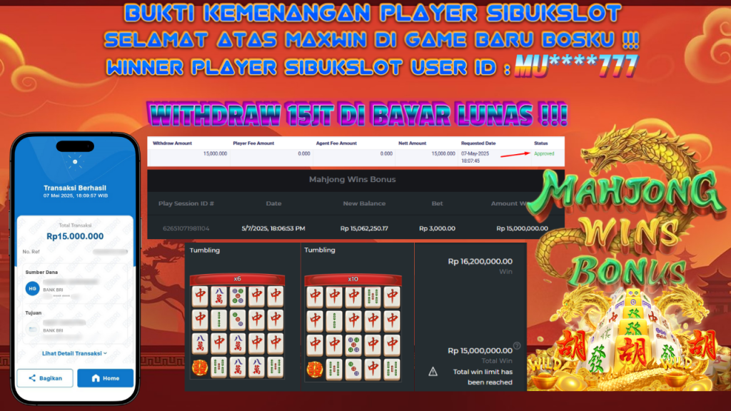 Bukti Kemenangan 7 Mei 2025 Di Game Mahjong Wins Bonus WD 15 Juta
