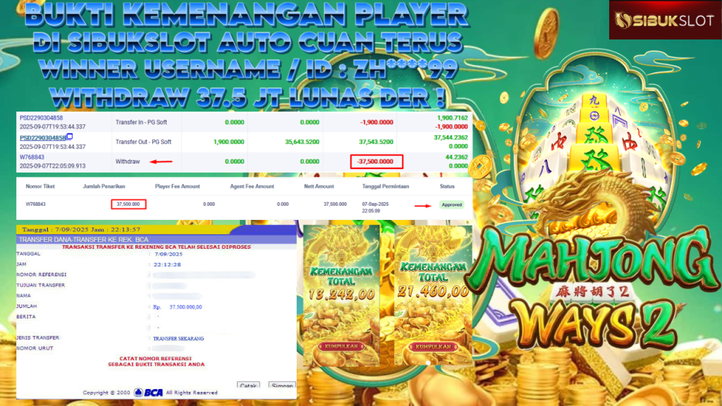 Bukti Kemenangan 7 September 2025 Di Game Mahjong Ways 2 Wild 37.5 Juta