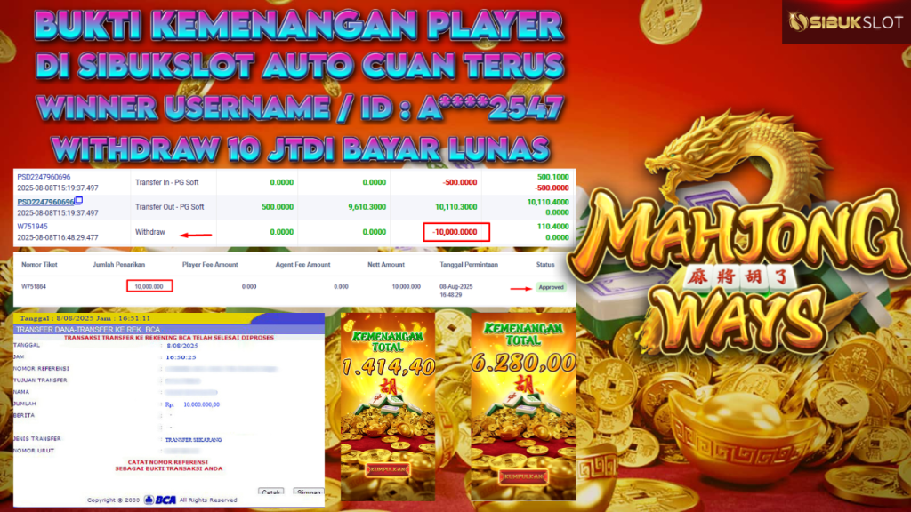 Bukti Kemenangan 8 Agustus 2025 Di Game Mahjong Ways WD 10 Juta