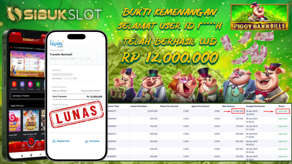 Bukti Kemenangan 8 April 2025 Di Game Piggy Bank Bill $ WD 12 Juta