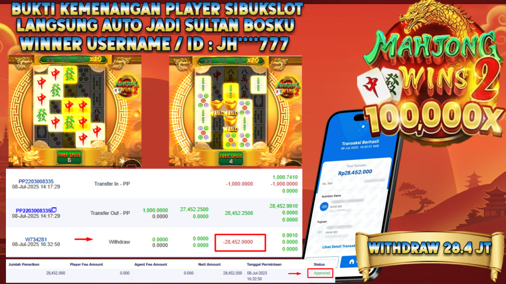 Bukti Kemenangan 8 Juli 2025 Di Game Mahjong Wins 2 WD 28.4 Juta