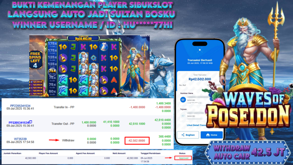 Bukti Kemenangan 9 Juli 2025 Di Game Waves of Poseidon WD 42.5 Juta