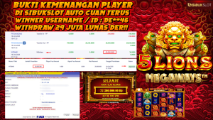 Bukti Kemenangan 16 Oktober 2025 Di Game 5 Lions Megaways 29 Juta